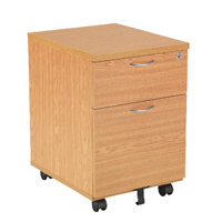 Offering a convenient and flexible place to store documents, papers and stationery, this oak-finish mobile pedestal fits under your desk, or can be used independently to suit your needs. The pedestal features 1 box drawer and 1 filing drawer suitable for foolscap suspension filing. This pedestal measures W434xD580xH595mm and is mobile on castors.