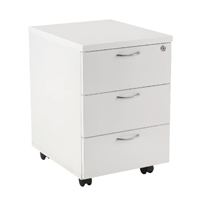 Designed to complement both Jemini and Arista desking, this 3 Drawer Mobile Pedestal can be used under desks or independently. The pedestal features 3 shallow box drawers for stationery, books or other office accessories and supplies. Mounted on four swivel castors, it can be manoeuvred easily for flexible use. Finished in an eye-catching white, the pedestal measures W434 x D580 x H595mm.